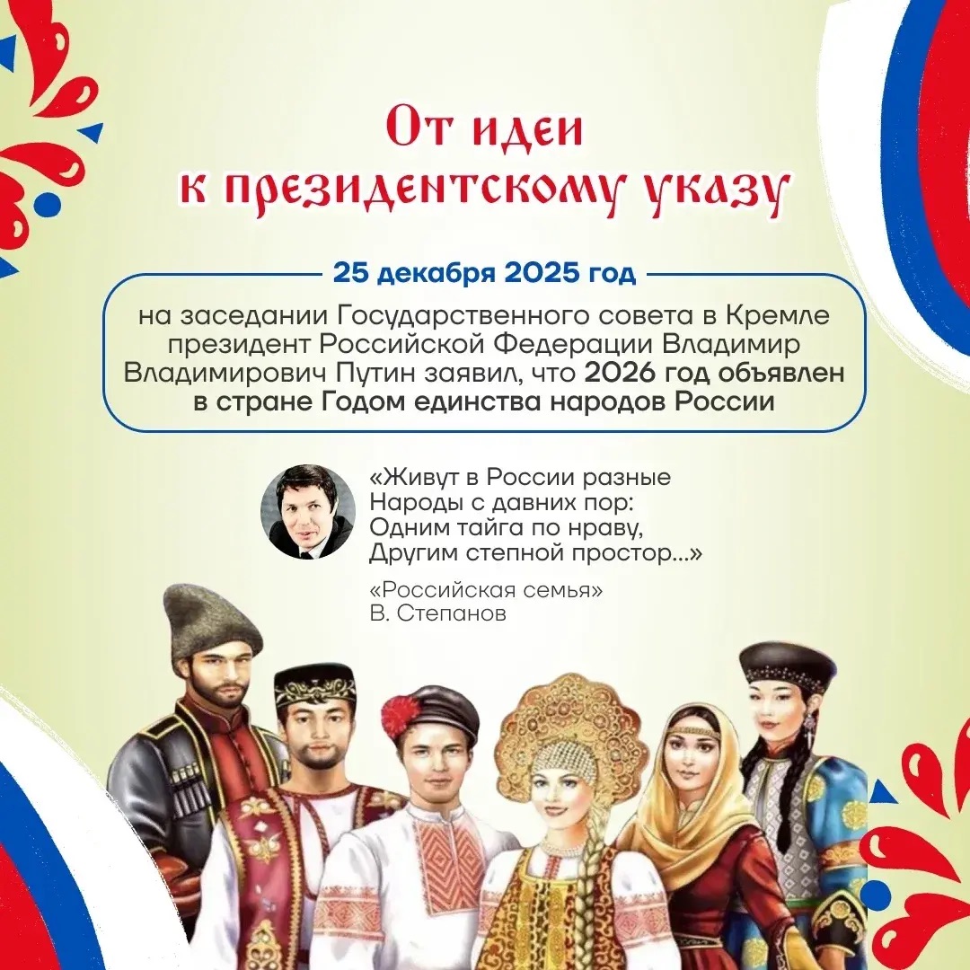 2026 год в России объявлен Годом единства народов по решению президента РФ Владимира Путина, принятому на заседании Совета при президенте по межнациональным отношениям 5 ноября 2025 года.