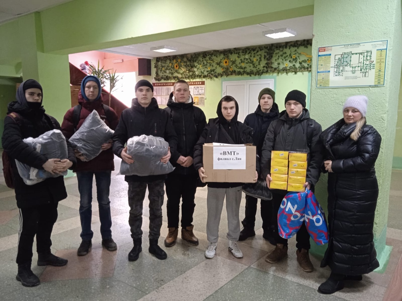 ГАПОУ СО "ВМТ" филиал села Лая принимает активное участие в сборе помощи для военных, принимающих участия Специальной военной операции. В рамках акции "МЫ ВМЕСТЕ" были собраны тёплая верхняя одежда: куртки и костюмы, так же носки, футболки и чай.