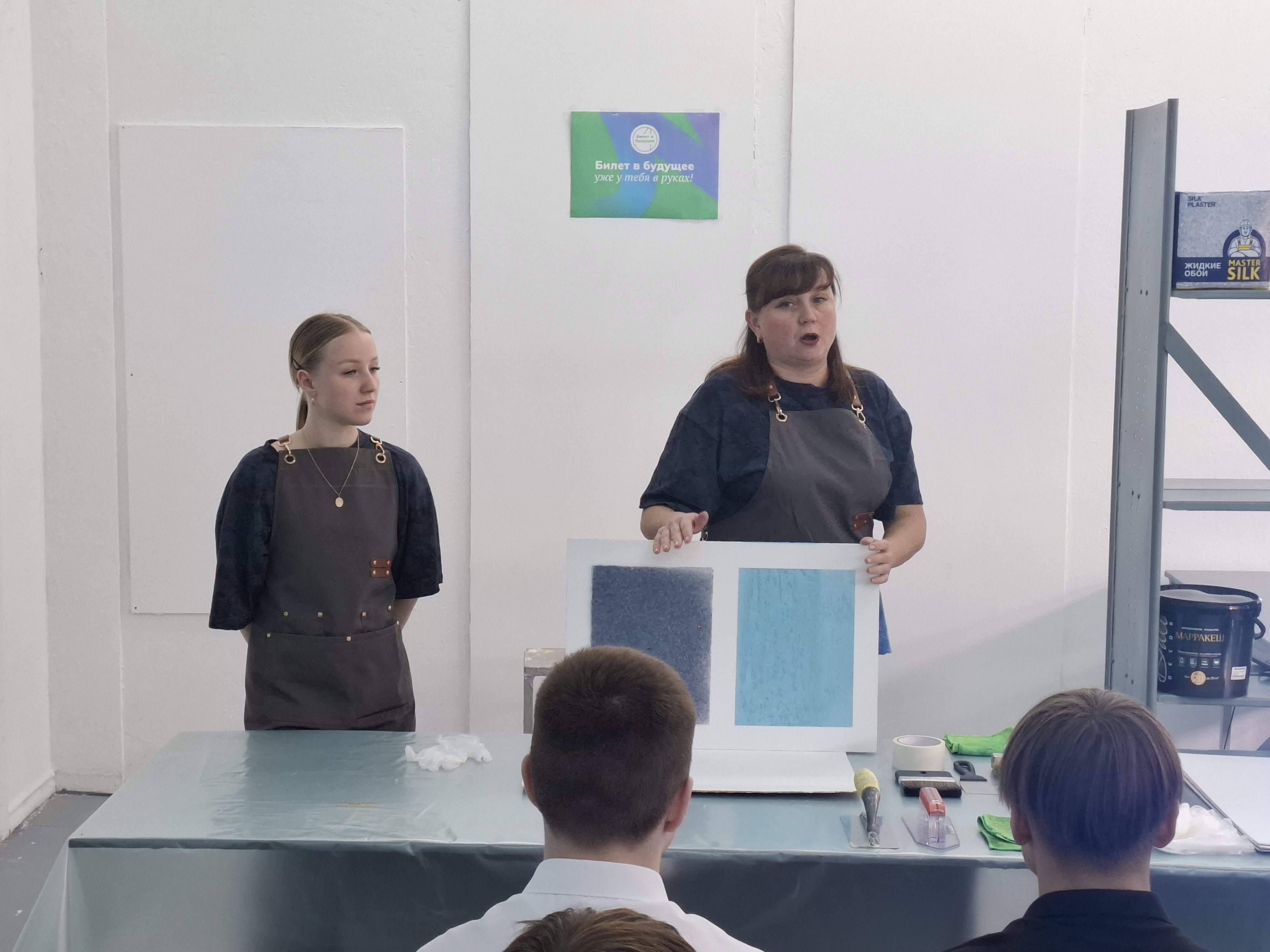 Участниками стали ученики МБОУ СОШ № 80. У ребят была уникальная возможность погрузится в мир увлекательной профессии: «Мастер отделочных строительных и декоративных работ» в роли маляров ребята выполняли - нанесения декоративного покрытия «Марракеш», нанесения жидких обоев на поверхность.