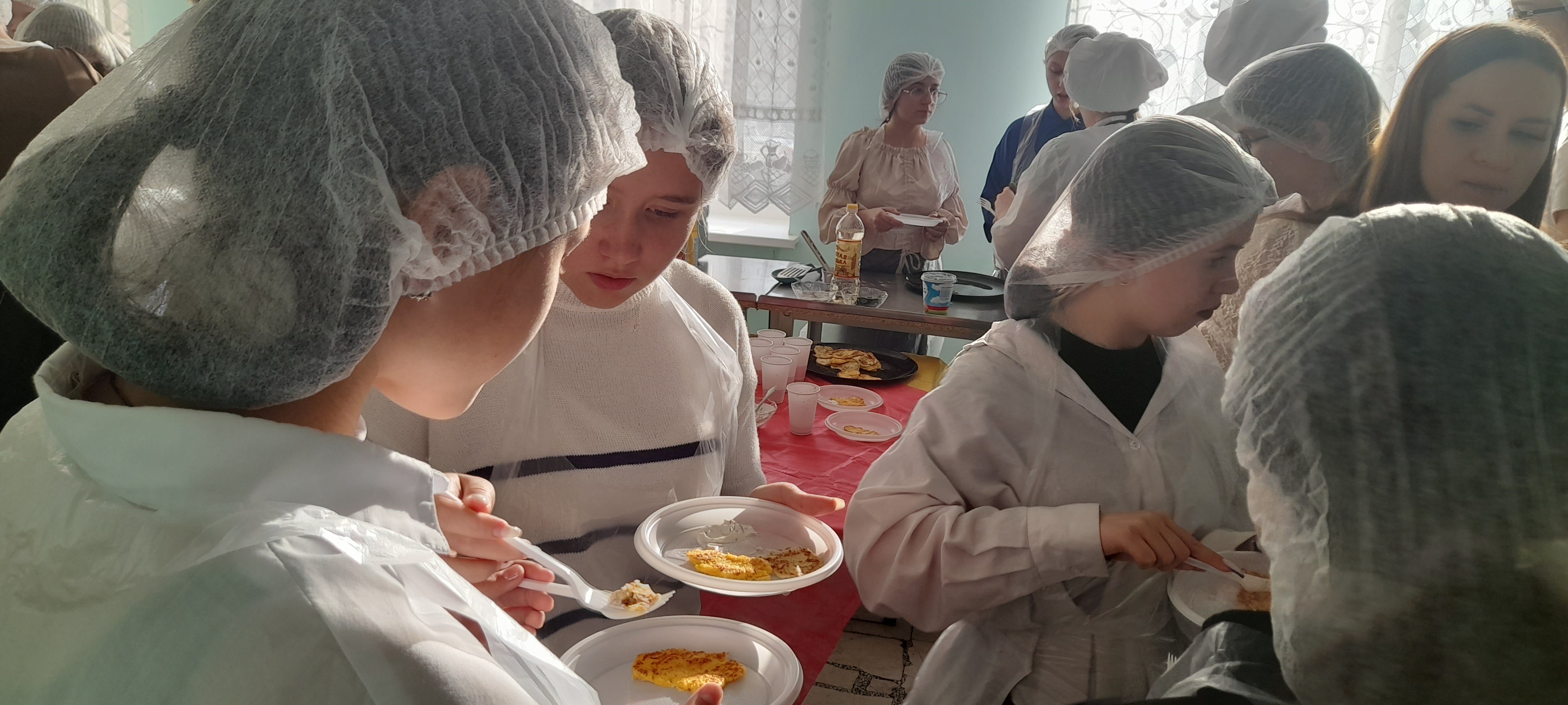 В финале мероприятия школьники продегустировали оладьи и попробовали морс приготовленный студентами.
