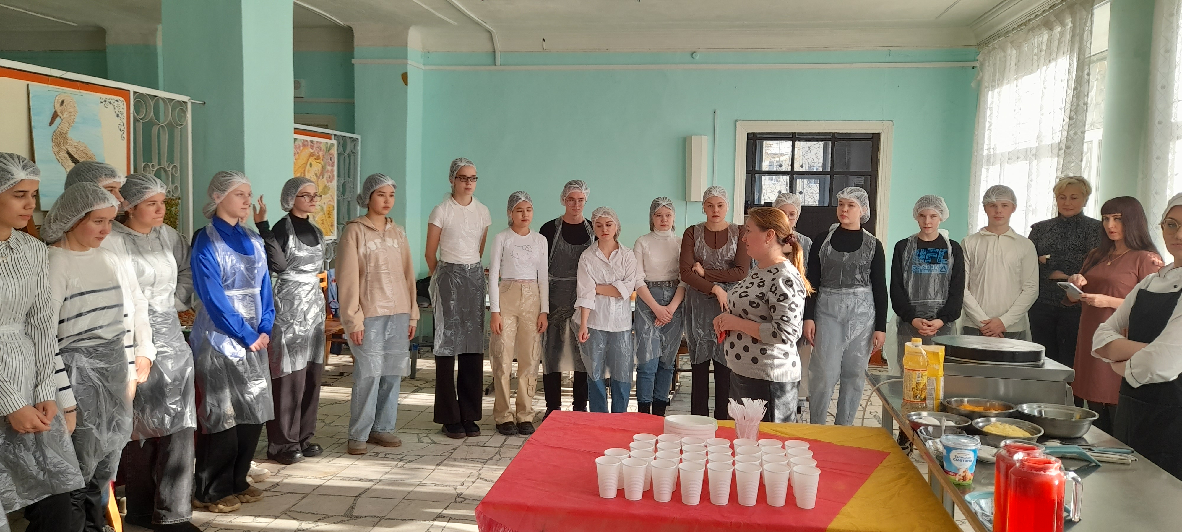 Ребята лично участвовали в приготовлении и очень внимательно наблюдали за работой студентов. Мастера производственного обучения Ястребова А.О. и Казакова И.А. рассказали все тонкости, плюсы и минусы данной специальности, какими качествами должен обладать повар, о производственной практики студентов.