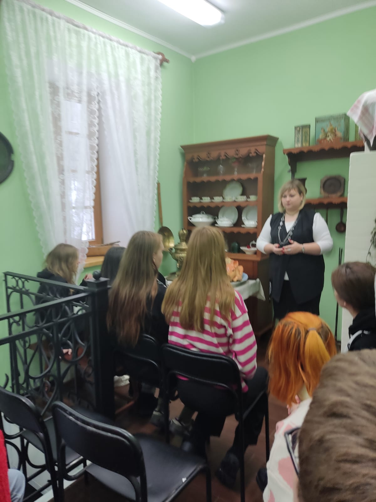 Ребята внимательно знакомились с кухней 19 века. Экскурсия была интересной, можно было увидеть комнаты, утварь и окрестный пейзаж.