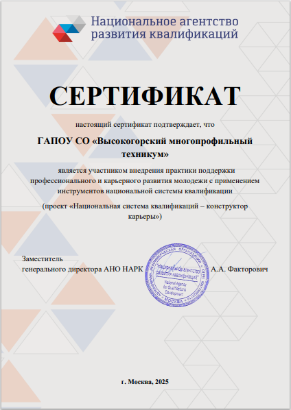 Внедрение практики осуществлялось в рамках проекта «Национальная система квалификаций – конструктор карьеры».