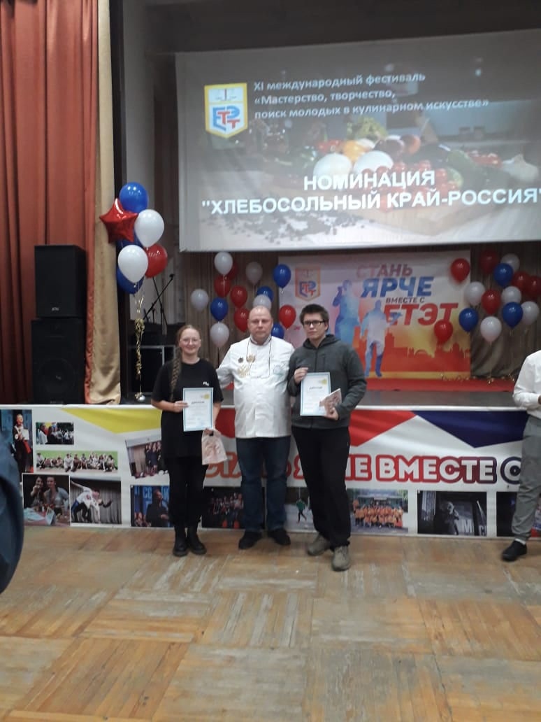 В ГАПОУ СО "Екатеринбургский торгово-экономический техникум" 19 октября проходил XI Международный фестиваль "Мастерство, творчество, поиск молодых в кулинарном искусстве" (Ural Professional Cooking Cup"). Студенты групп 115 и 315 по профессии "Повар, кондитер" Авдюкова Дарья и Шестаков Андрей, под руководством мастеров производственного обучения Черепановой Марины Вячеславовны и Казанцевой Ольги Павловны, участвовали в номинации "Хлебосольный край - Россия".