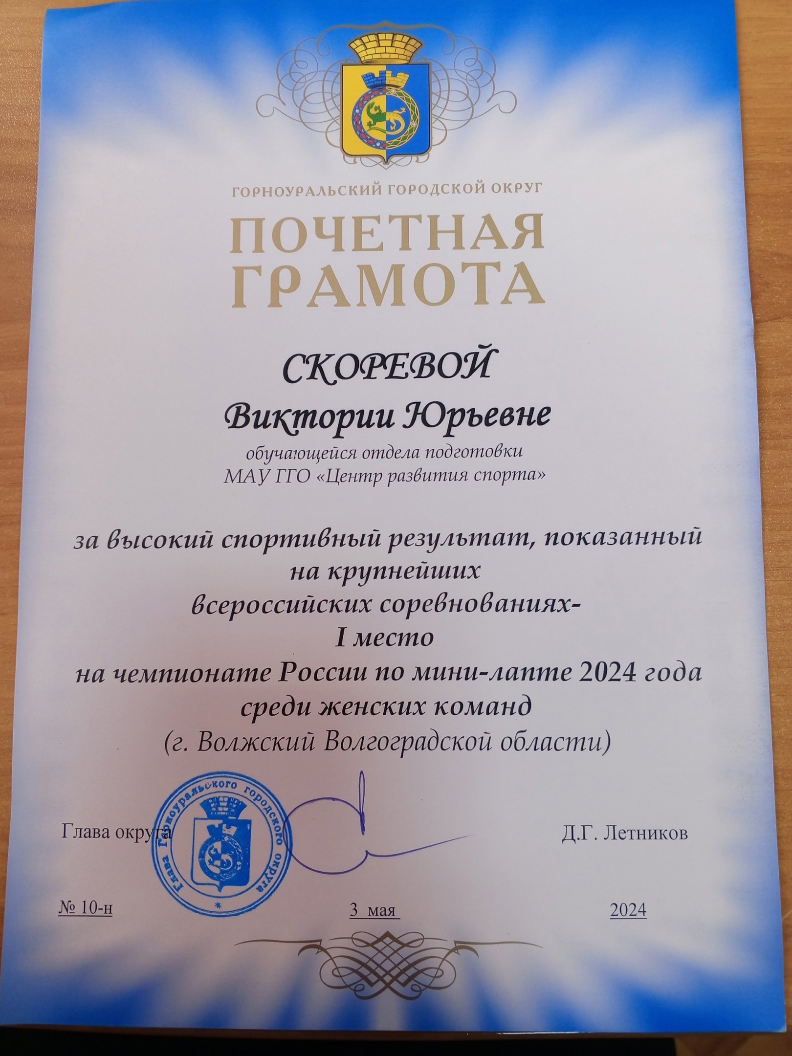 Поздравляем нашу обучающуюся группы № 118 " Кухонный рабочий" Скореву Викторию Юрьевну за высокий спортивный результат, показанный на крупнейших всероссийских соревнованиях - 1 место на чемпионате России по мини-лапте 2024 года среди женских команд (г. Волжский Волгоградской области)