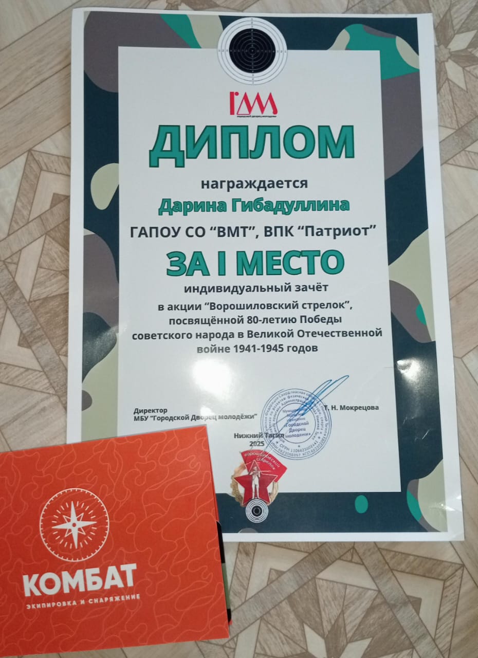 14-17 апреля в Городском дворце молодежи команда ГАПОУ СО "Высокогорского многопрофильного техникума" "Патриот" принимала участие в акции "Ворошиловский стрелок", посвящённой 80-летию Победы советского народа в Великой Отечественной войне 1941-1945 года.