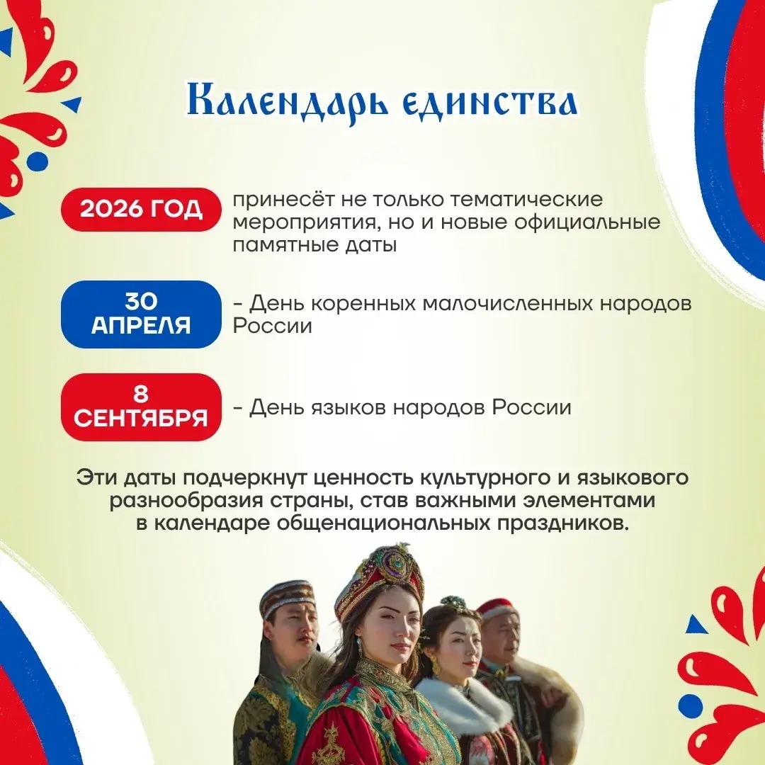 2026 год в России объявлен Годом единства народов по решению президента РФ Владимира Путина, принятому на заседании Совета при президенте по межнациональным отношениям 5 ноября 2025 года.